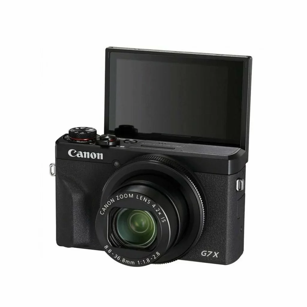 Canon PowerShot G7 X Mark III — это популярная компактная камера, известная своим качеством видео 4K, 1-дюймовым датчиком изображения и откидным сенсорным экраном, что делает ее идеальным выбором для видеоблогеров и создателей контента.
