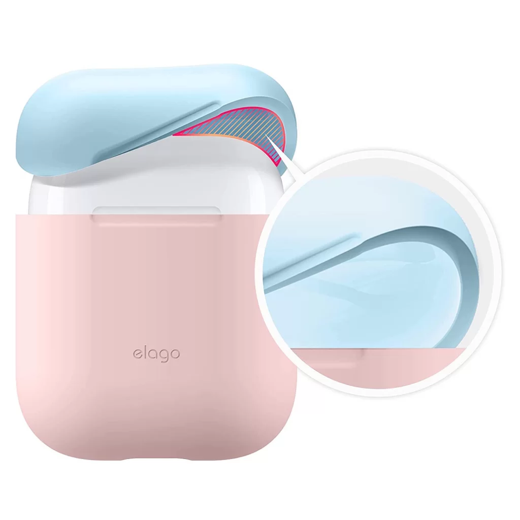 Чехол Elago DUO для AirPods, силикон, розовый, крышки - белый и голубой