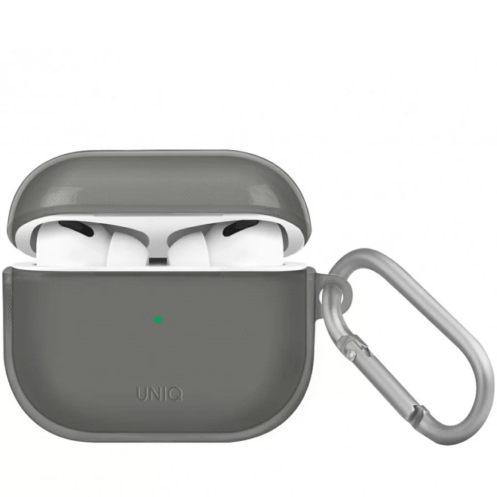 Чехол Uniq Glase TPU case с крабином для Airpods 3, серый