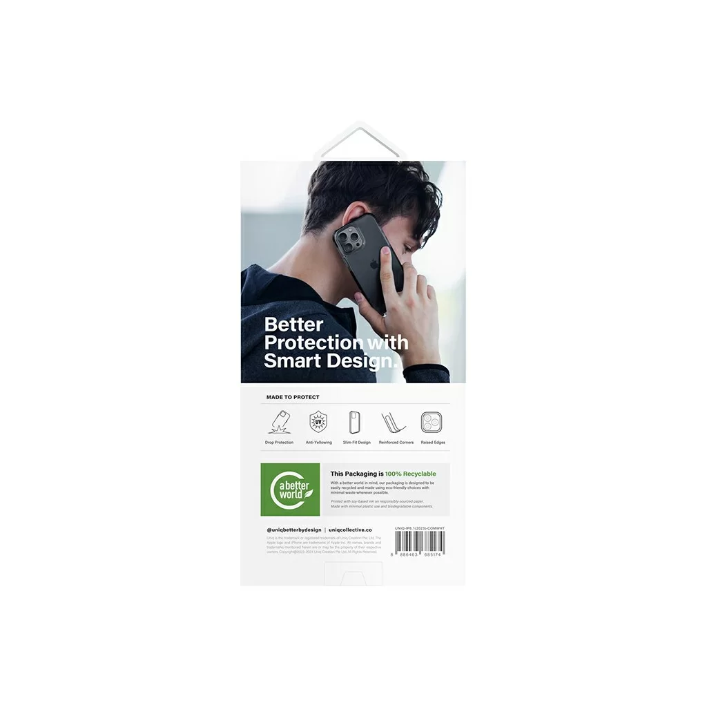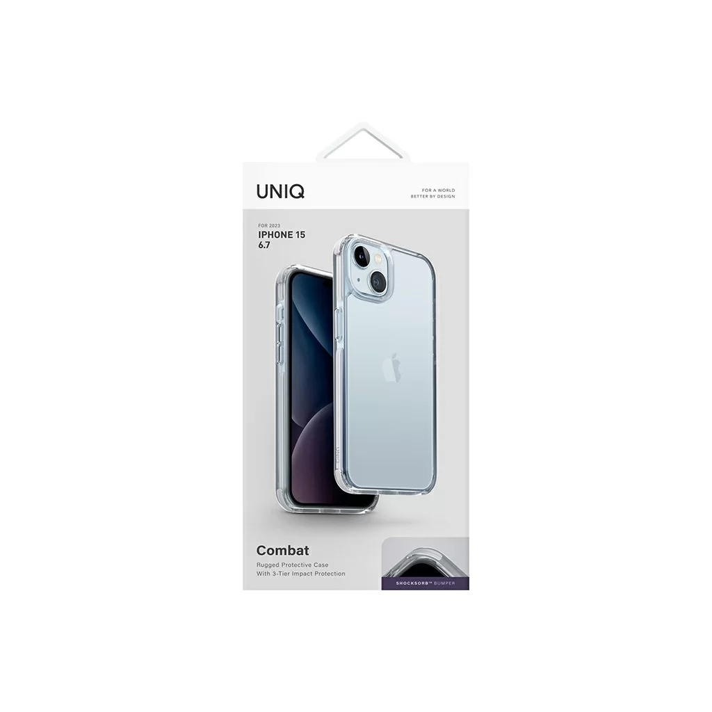 Чехол для Uniq для iPhone 15 Plus Combat, белый/прозрачный