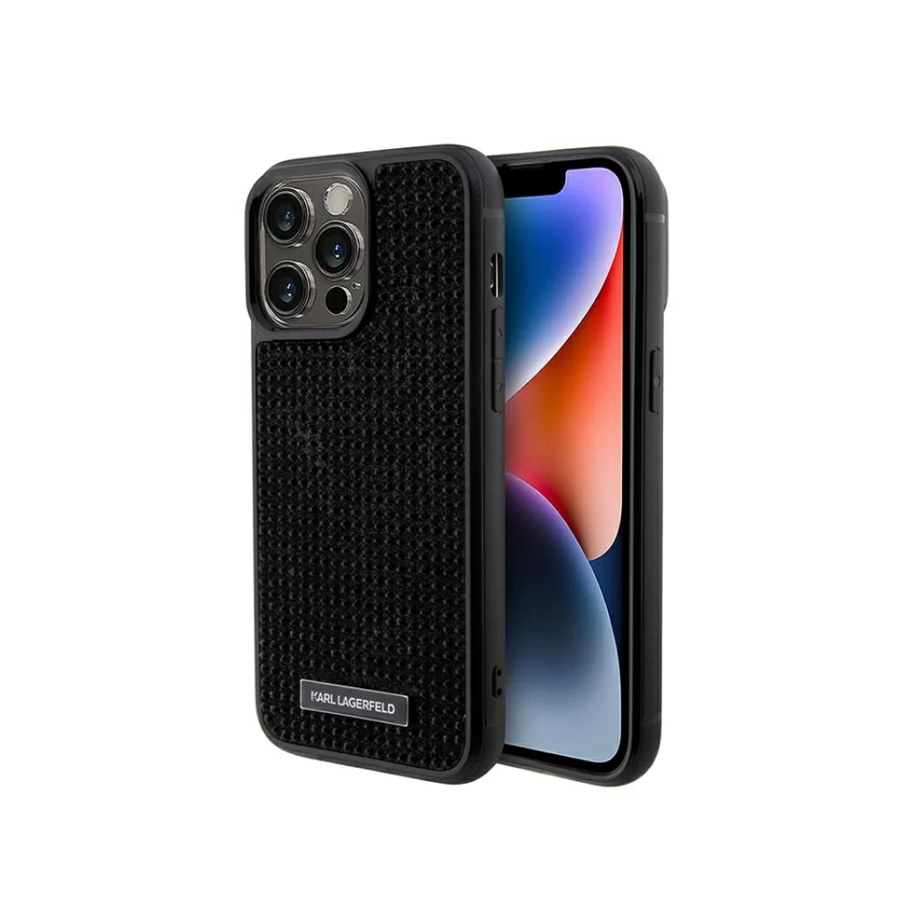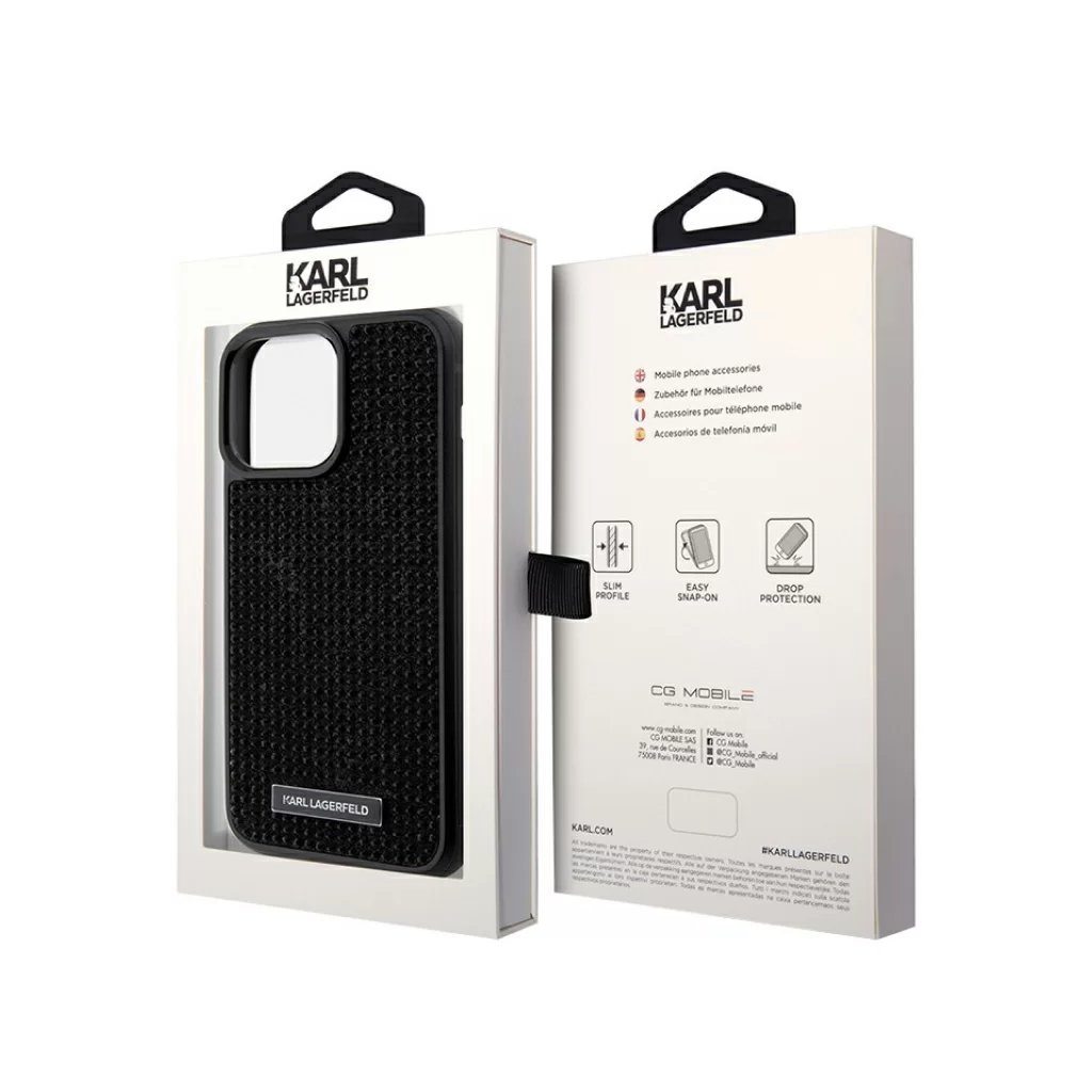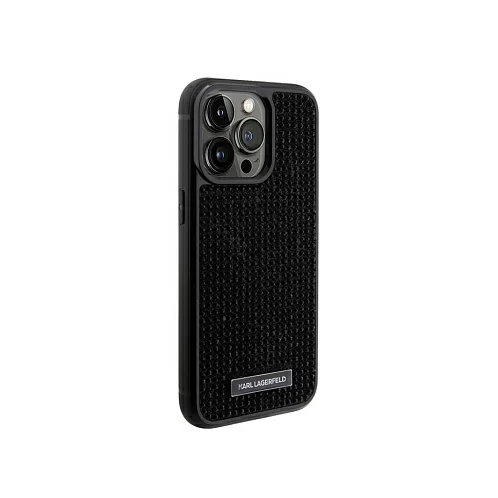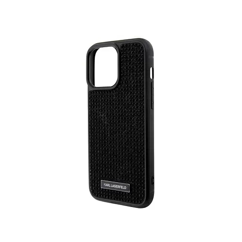 Чехол Lagerfeld для iPhone 15 Pro Diamond Rhinestone Metal logo Hard Black