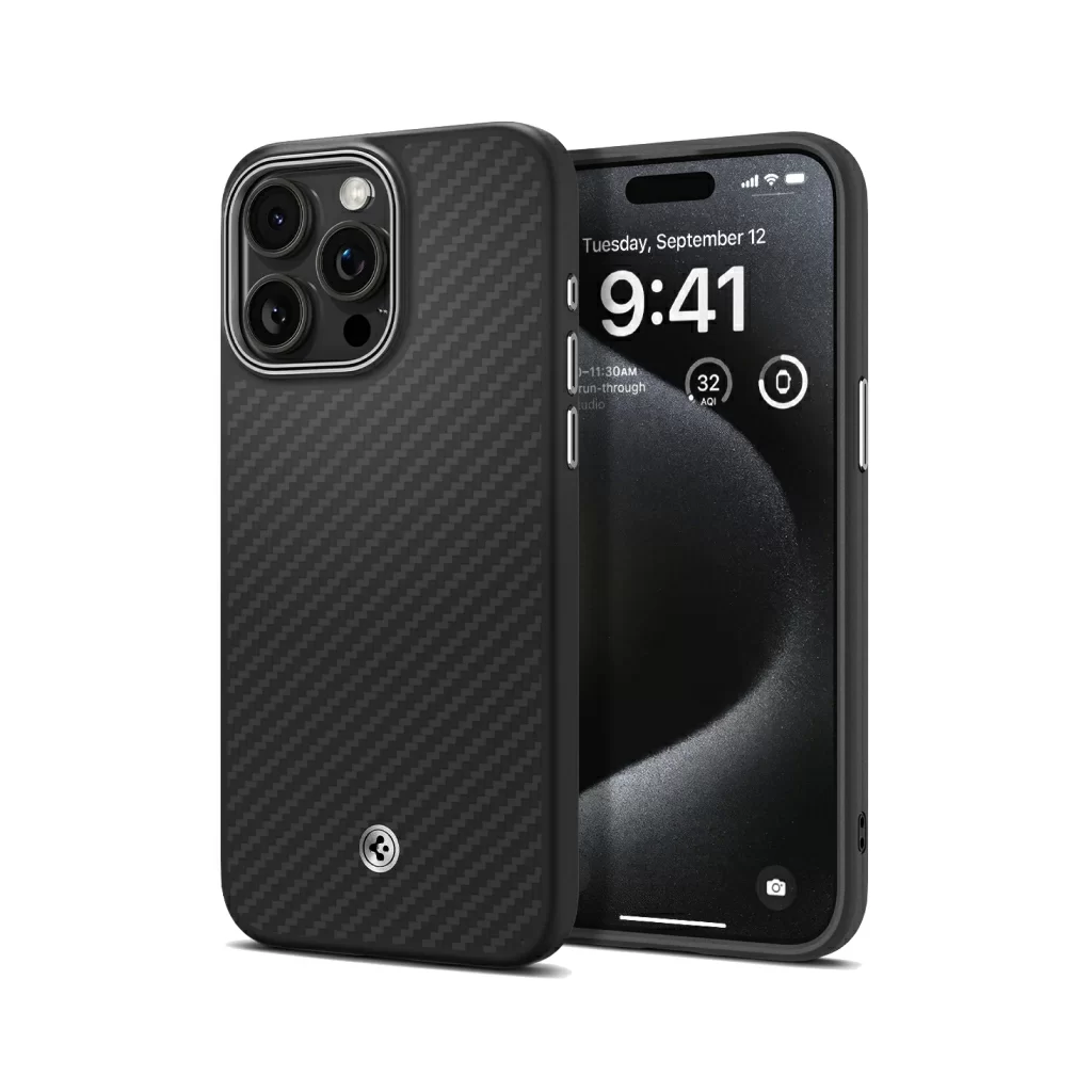 Чехол SPIGEN Enzo Aramid для iPhone 15 Pro, MagSafe, кевлар-арамид, матовый, черный