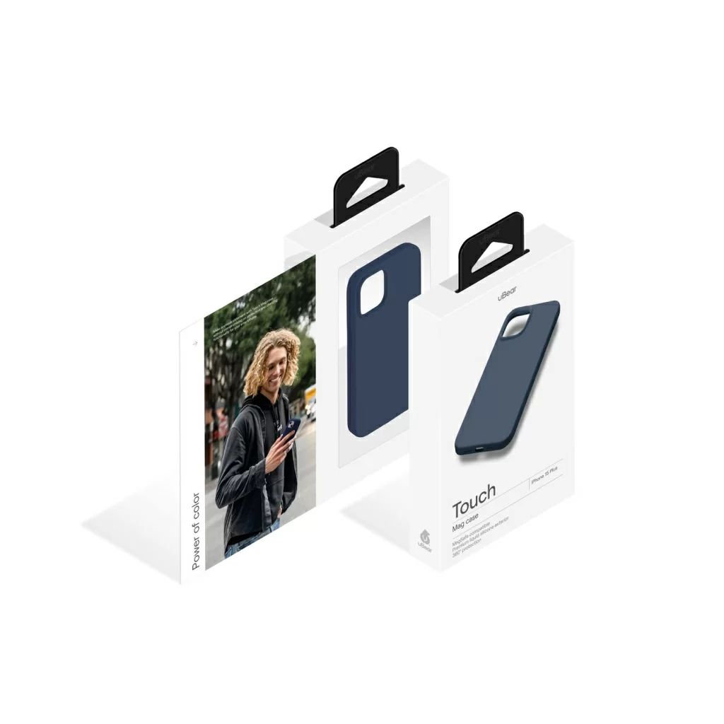 Чехол uBear для iPhone 15 Plus Touch Mag Case, силикон, софт-тач, тёмно-синий