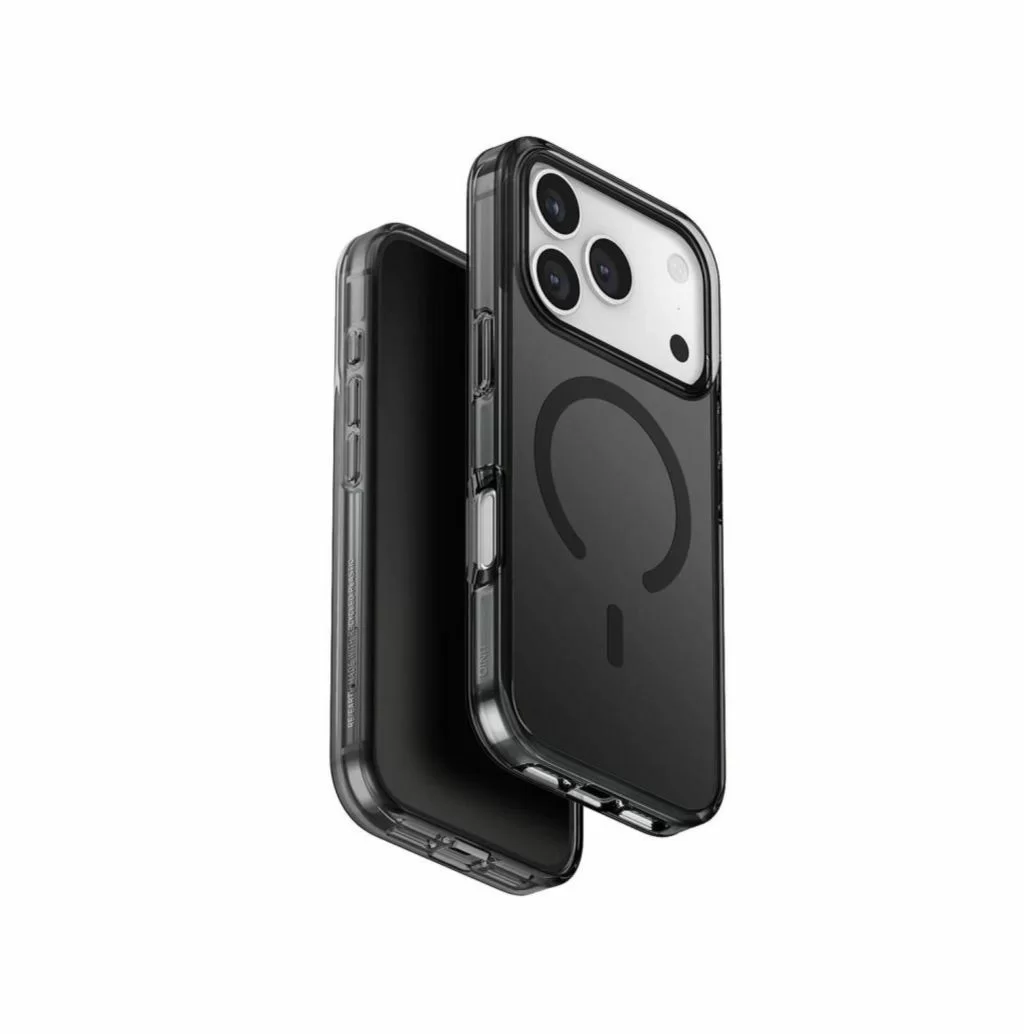 Тонкий и прочный чехол с прозрачной «дымчатой» спинкой и встроенными магнитами для уверенной работы с MagSafe. Сохраняет внешний вид iPhone 17 Pro, защищая корпус и блок камер от повседневных царапин и ударов.
