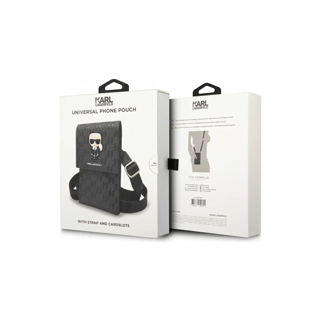 Сумка Lagerfeld Wallet Phone Pouch Saffiano Monogram Ikonik patch для смартфонов, серебро / черный