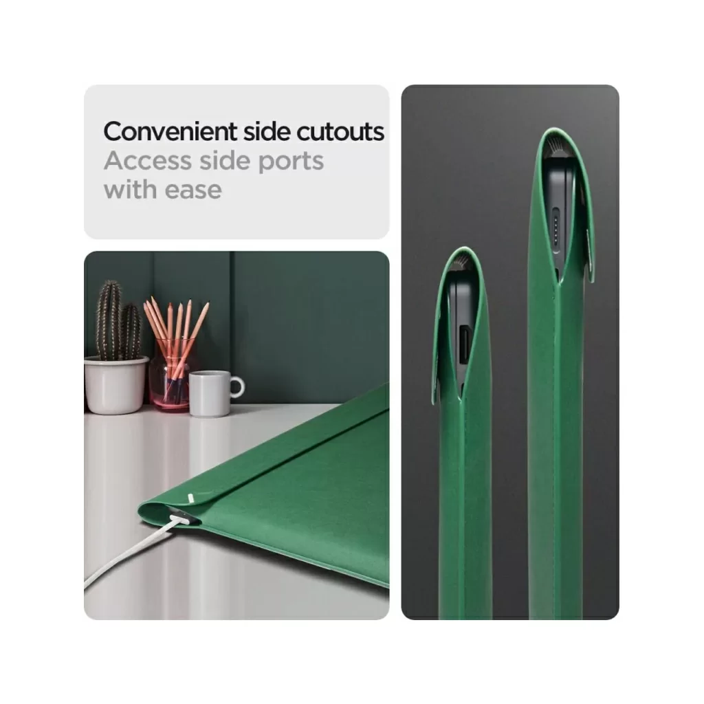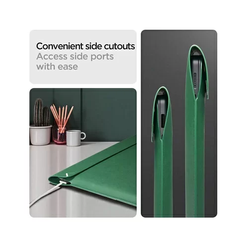Дополнительным преимуществом являются удобные вырезы для боковых портов, обеспечивающие легкий доступ без необходимости вынимать ноутбук из чехла.