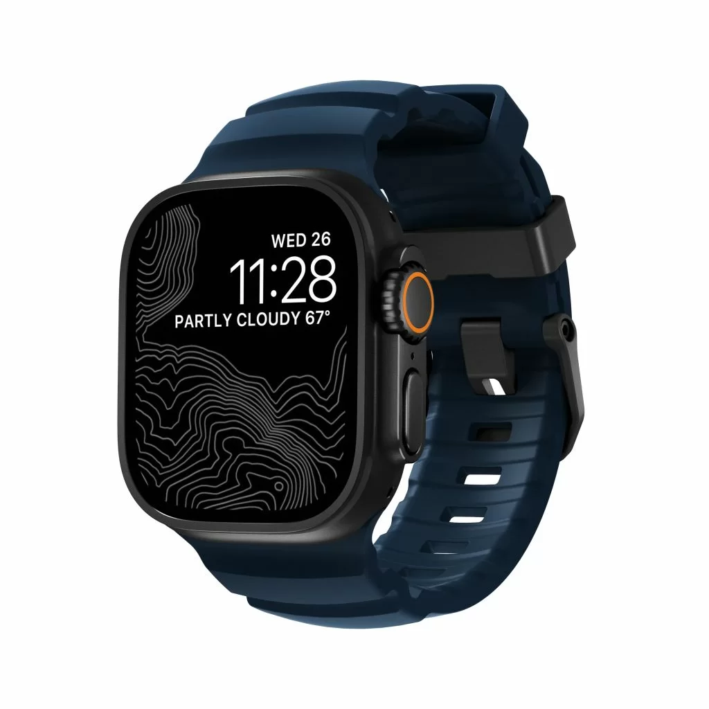 Ремешок Nomad Rocky Point Band для Apple Watch 49/45/44/42mm, black lock, atlantic | синий
