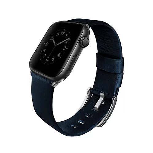 Ремешок Uniq Mondain для Apple Watch 49/45/44/42 mm, кожаный, синий