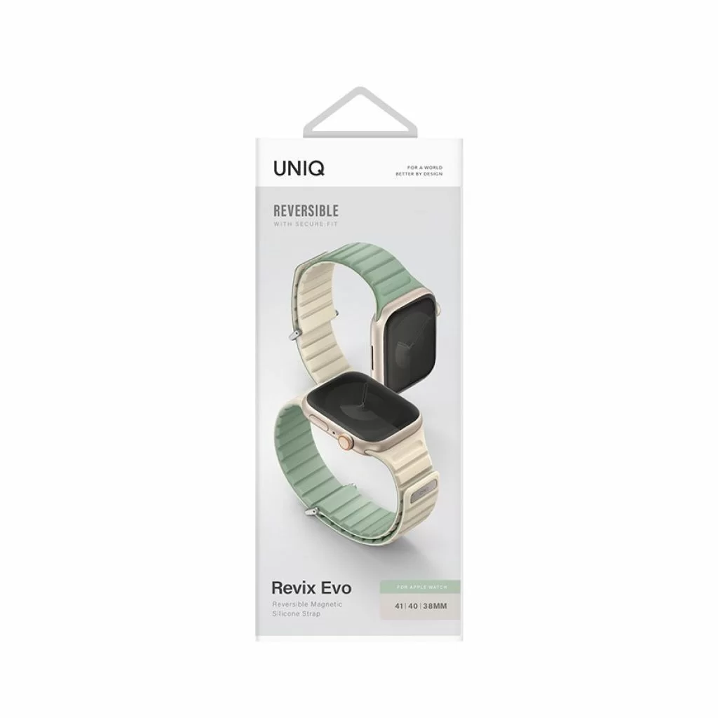 Ремешок Uniq Revix EVO Premium для Apple Watch, 41/40/38 мм, двухсторонний, мятный/бежевый