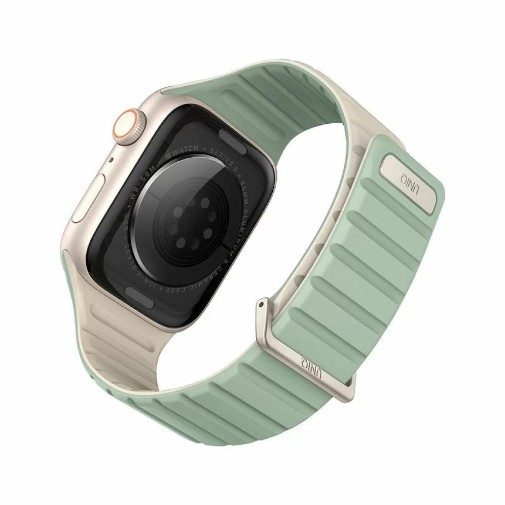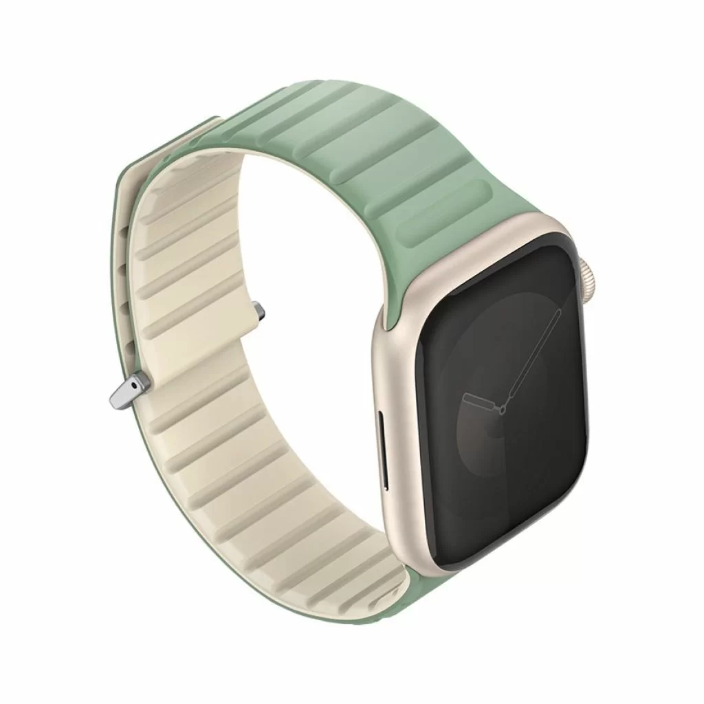 Двусторонний ремешок из мягкого силикона Uniq REVIX EVO для Apple Watch с размером корпуса 42/41/40. Вы можете легко поменять внешние стороны ремешка в зависимости от своего стиля и предпочтений. Фиксируется на руке с помощью удобной магнитной застежки, выдерживает нагрузку до 1.2 кг. Возможность регулировки длины за счет встроенных магнитов обеспечивает точное соответствие размерам руки. Металлическая стальная застежка дополнительно фиксирует устройство на запястье, позволяя не беспокоиться об утере даже при занятиях спортом.