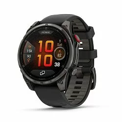 Умные часы Garmin Fenix 8 Sapphire AMOLED 51 мм, титан с DLC, ремешок - силикон, чёрный/серый