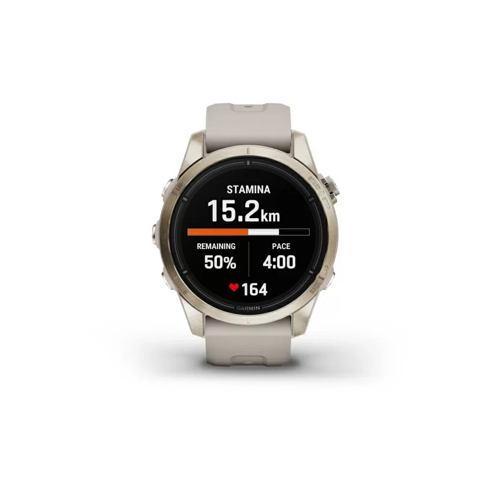 Умные часы Garmin Epix Pro (Gen 2) Sapphire Edition 42 мм, титан/золото, ремешок - светло-песочный