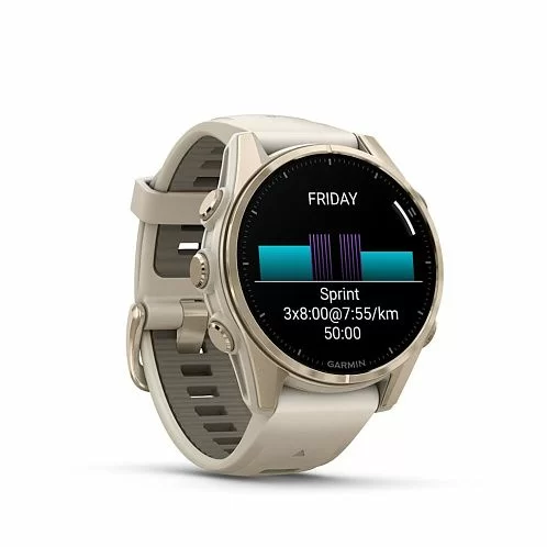 Умные часы Garmin Fenix 8 Sapphire AMOLED 43 мм, золотистый корпус, дымчато-серый ремешок