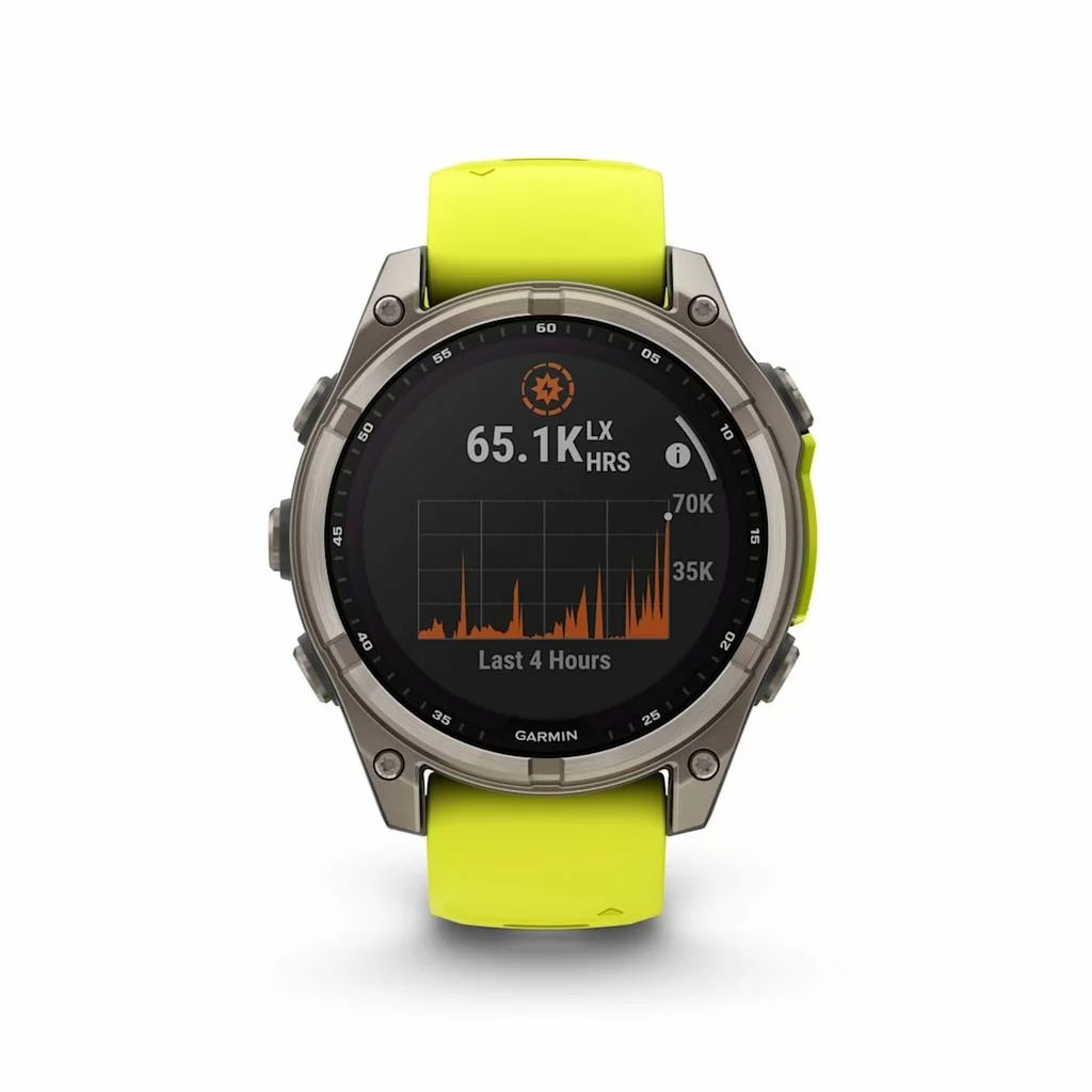 Умные часы Garmin Fenix 8 Sapphire Solar 47 мм, титан, ремешок - силикон, жёлтый/графит