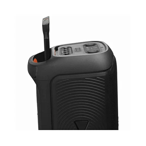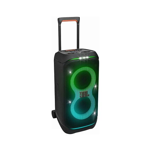 Используйте входы микрофона и гитары, чтобы блистать на сцене. Вы можете управлять ходом вечеринки в течение ночи с помощью веселых интерактивных эффектов. Благодаря надежной телескопической ручке и широким прочным колесикам вы можете перекатить JBL PartyBox Stage 320 практически в любое места, а защита от брызг не позволит небольшому дождю испортить веселье.