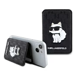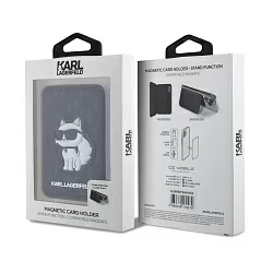Чехол-бумажник Lagerfeld Wallet MagSafe Cardslot Stand Saffiano Monogram NFT Choupette, черный