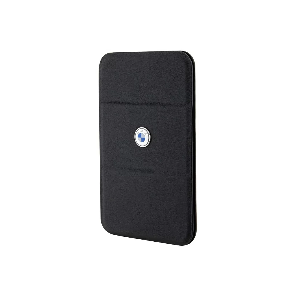 Чехол-бумажник BMW Wallet MagSafe Cardslot Stand Signature Leather with metal logo, черный