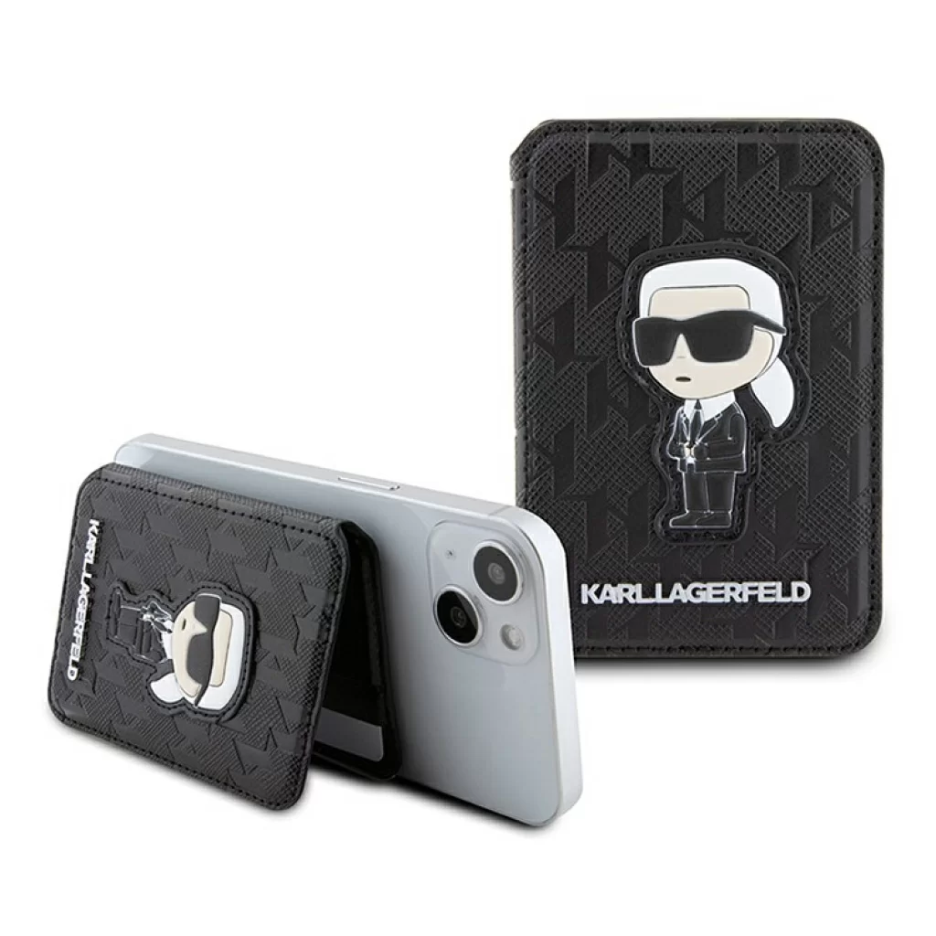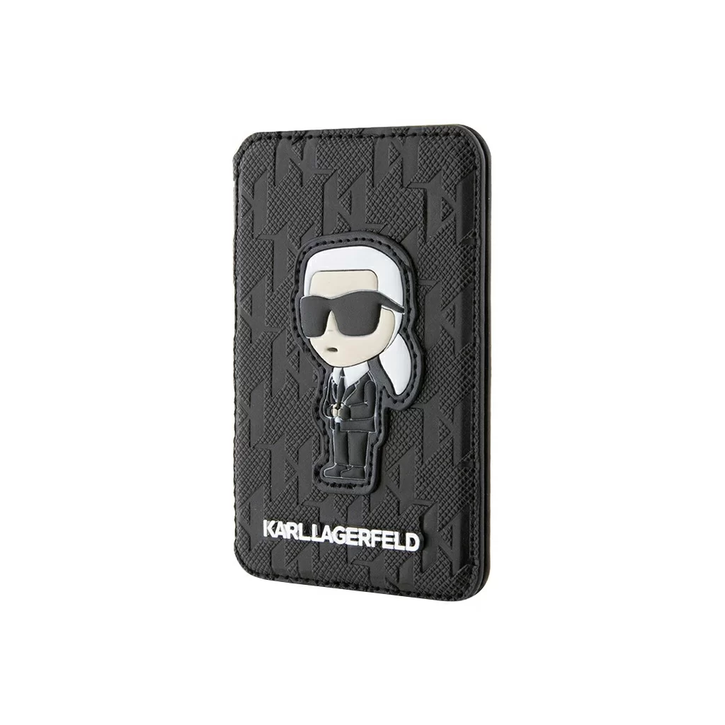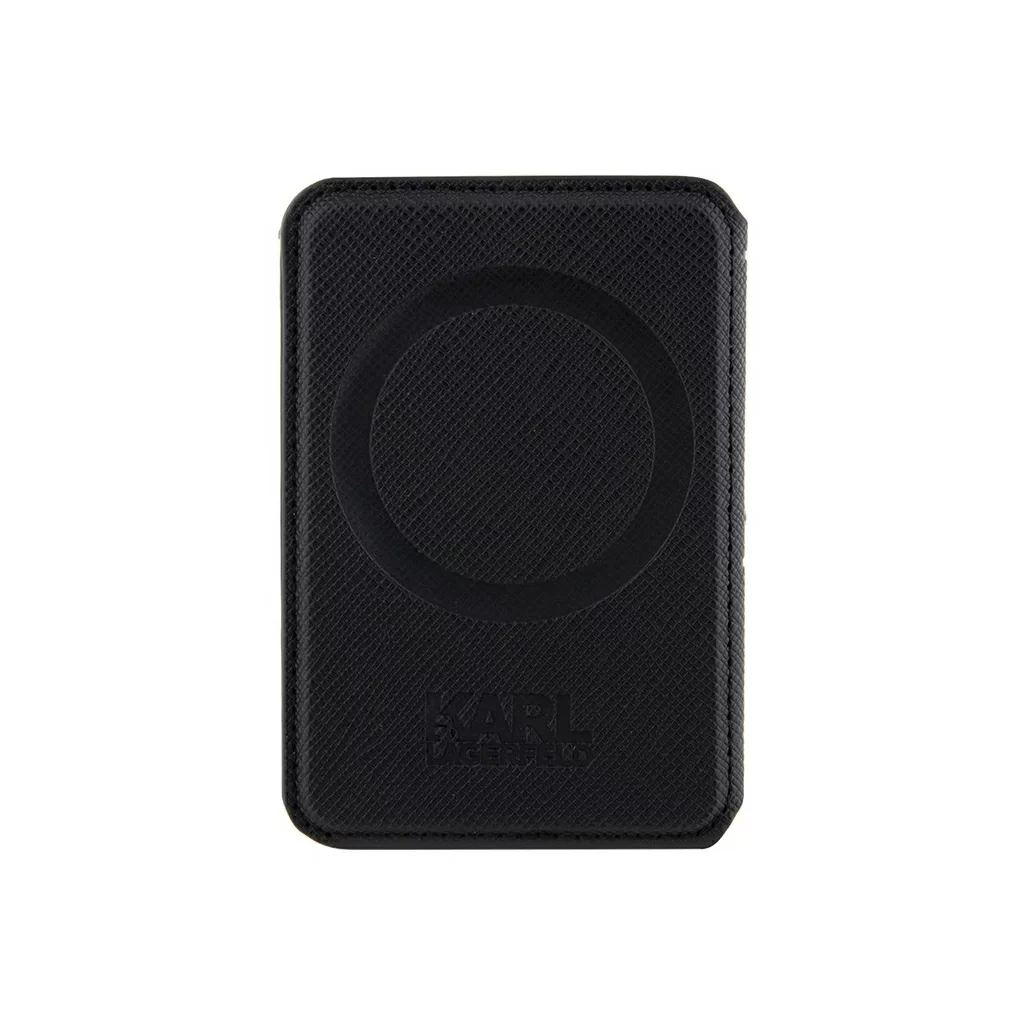 Чехол-бумажник Lagerfeld Wallet MagSafe Cardslot Stand Saffiano Monogram NFT Karl, черный