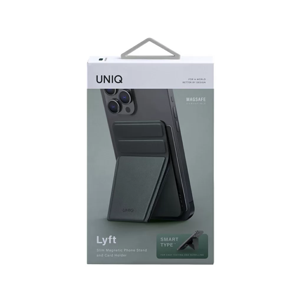 Uniq Lyft Magnetic - тонкая магнитная подставка/ручка для мобильного телефона и держатель для банковских карт. Просто установите его на MagSafe-совместимый телефон и наслаждайтесь просмотром в режиме видеозвонков или серфингом в сети Интернет. Телефон можно расположить как в портретной, так и в ландшафтной ориентации.