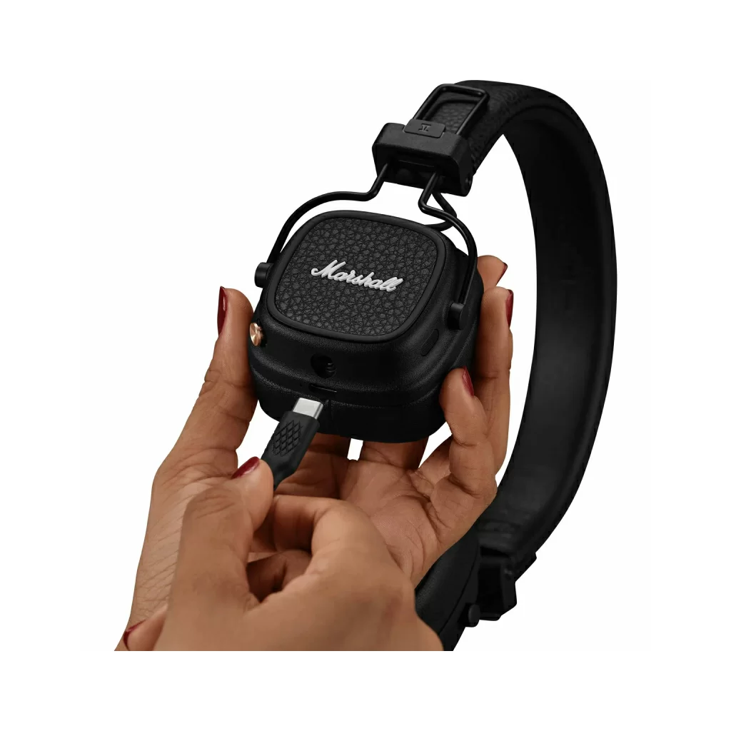Беспроводная зарядка позволяет легко подзарядить Major V, когда это необходимо. Просто положите наушники на зарядную площадку, и все готово. Major V также можно заряжать с помощью зарядного кабеля USB-C, входящего в комплект поставки.