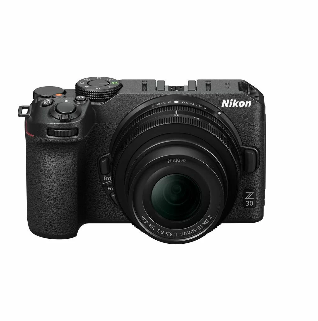 NIKON Z30 Z DX 16-50mm f/3.5-6.3 VR (kit) — это компактная беззеркальная APS-C камера, оптимизированная для видеоблогеров и создателей контента (20.9 Мп, 4K видео без кропа). В комплекте идет универсальный стабилизированный объектив. Камера имеет полностью поворотный сенсорный экран, отличный автофокус с распознаванием глаз, встроенный стереомикрофон и возможность питания через USB-C.