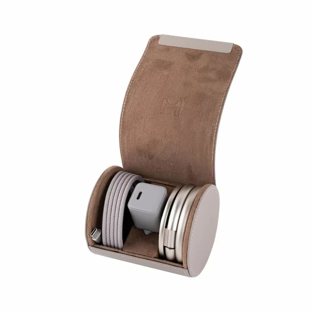 • Комплектация: в комплект обычно входит адаптер питания mini GaN мощностью 30 Вт, магнитный кабель USB Type-C длиной 1.2 м с защитой от изломов и стильный кожаный кейс для хранения и переноски.