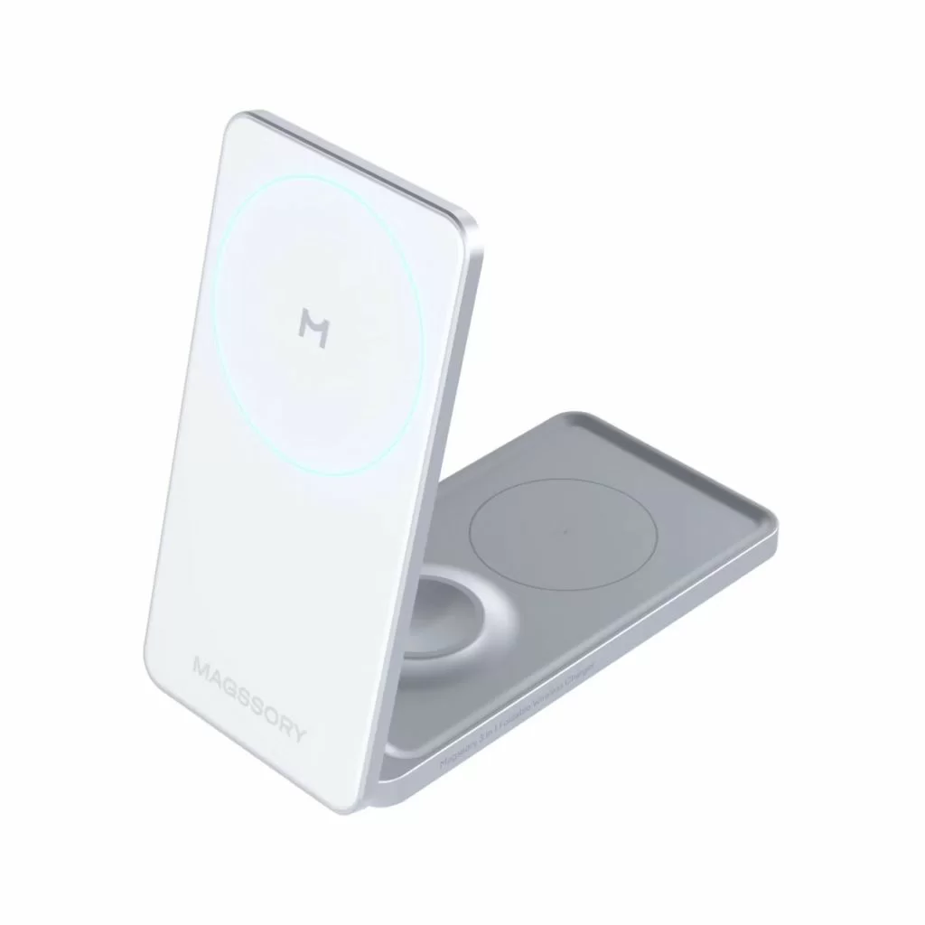 Беспроводное зарядное устройство Magssory Flip 3 в 1, складной, серебро
