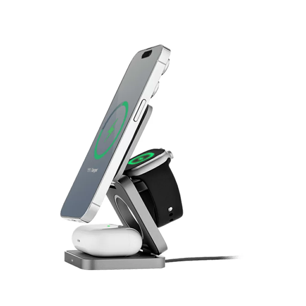Стильное беспроводное решение с оптимальным функционалом. Минималистичный складной корпус зарядного устройства с поддержкой MagSafe заряжает до трех устройств одновременно.