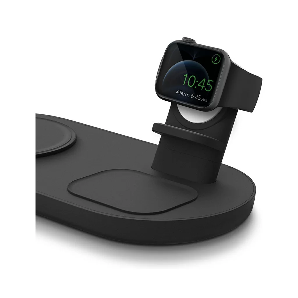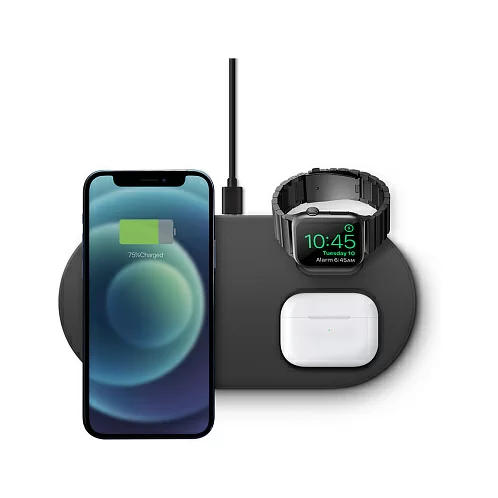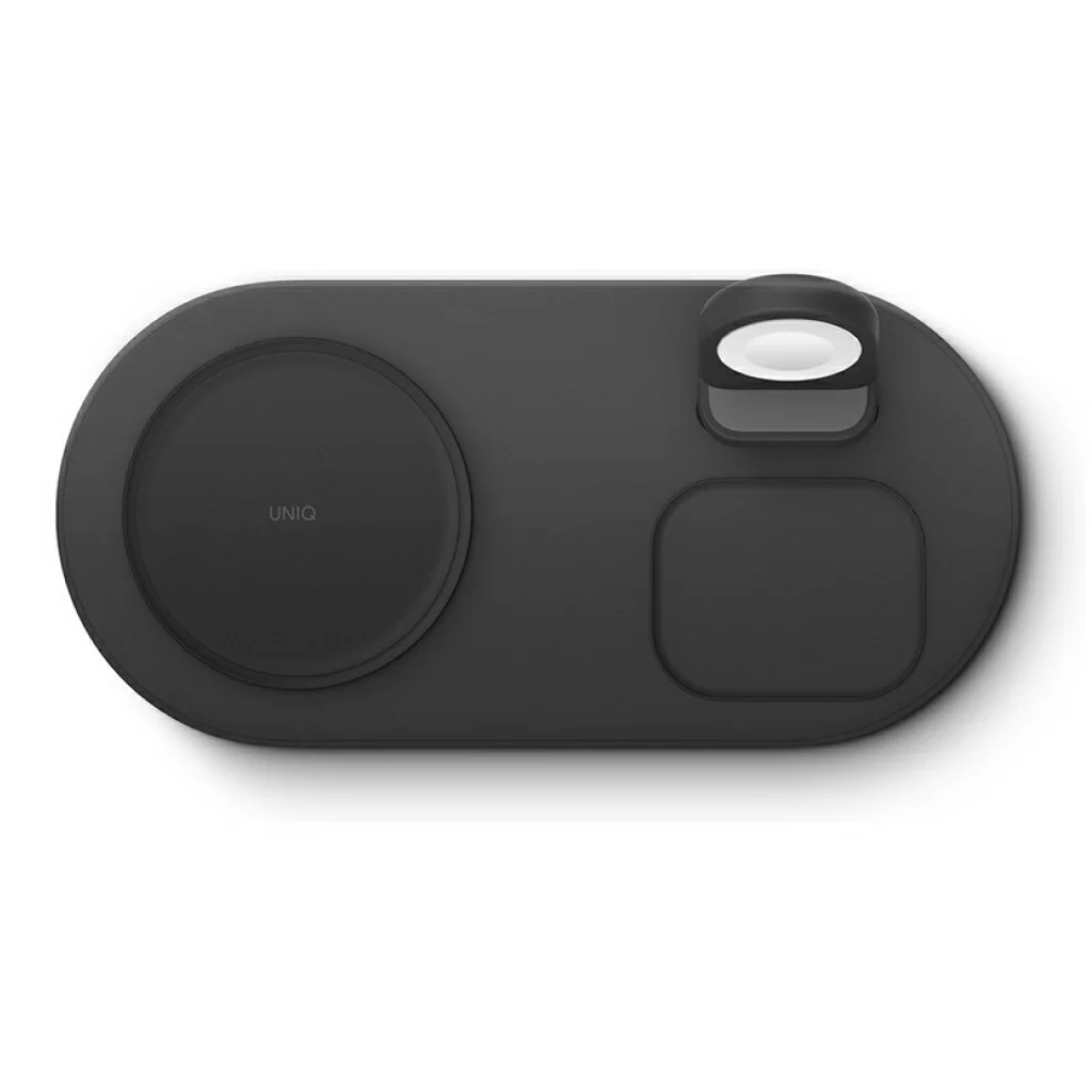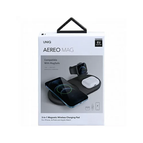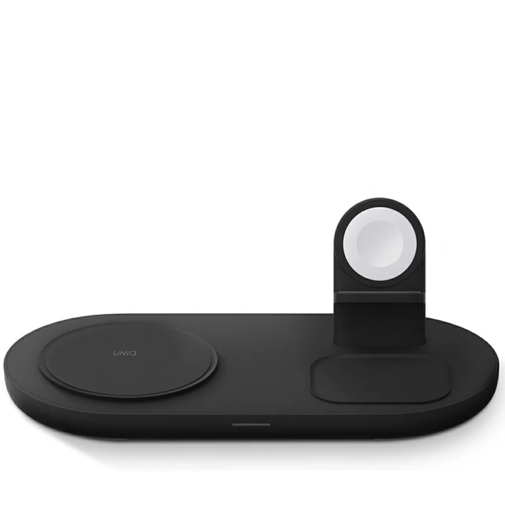 Беспроводная док-станция Uniq Aereo Mag 3-in-1 для одновременной зарядки iPhone, беспроводных наушников AirPods и смарт-часов Apple Watch на одной платформе. Совместимый с MagSafe модуль для быстрой зарядки iPhone. Сетевой блок питания в комплекте. Скорость зарядки с Uniq Aereo Mag на 40% выше по сравнению с другими беспроводными зарядными устройствами. Модуль беспроводной зарядки для часов Apple Watch в комплект не входит.