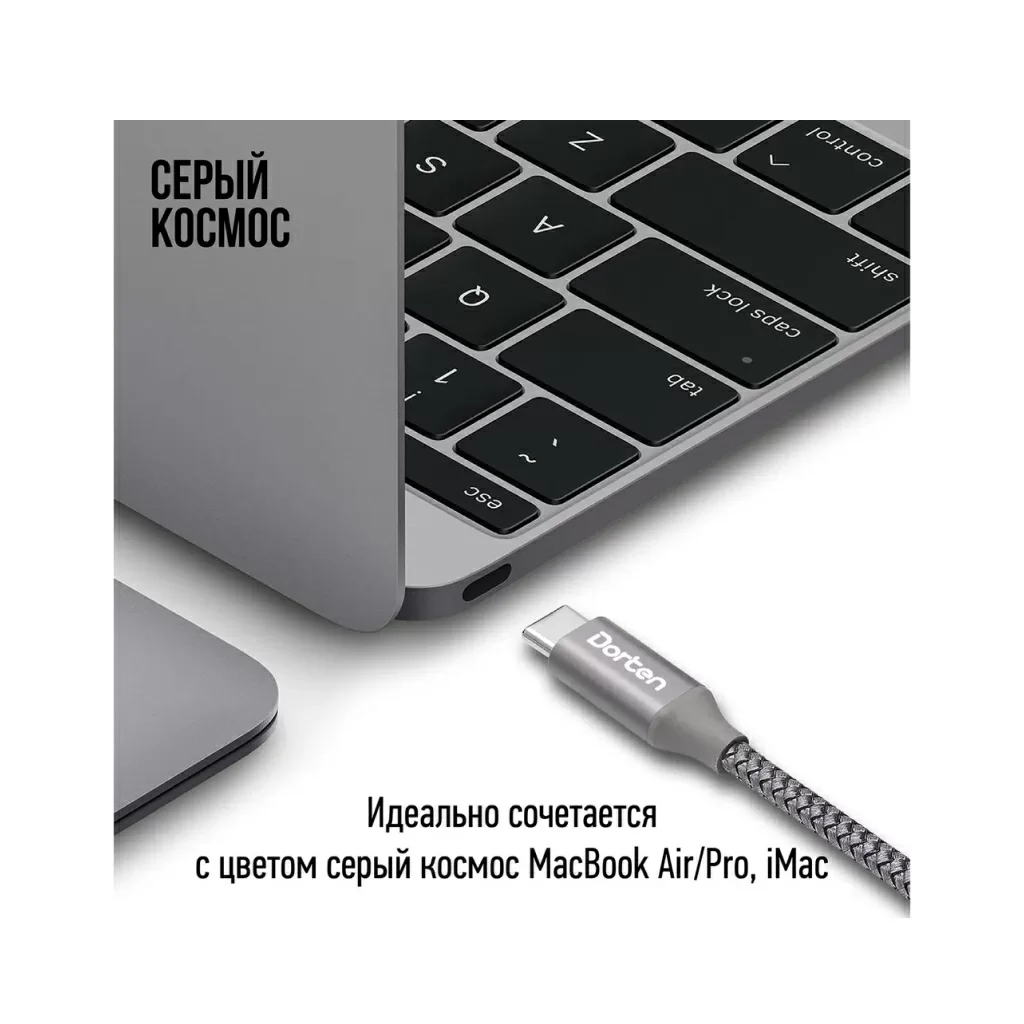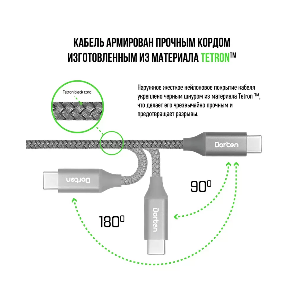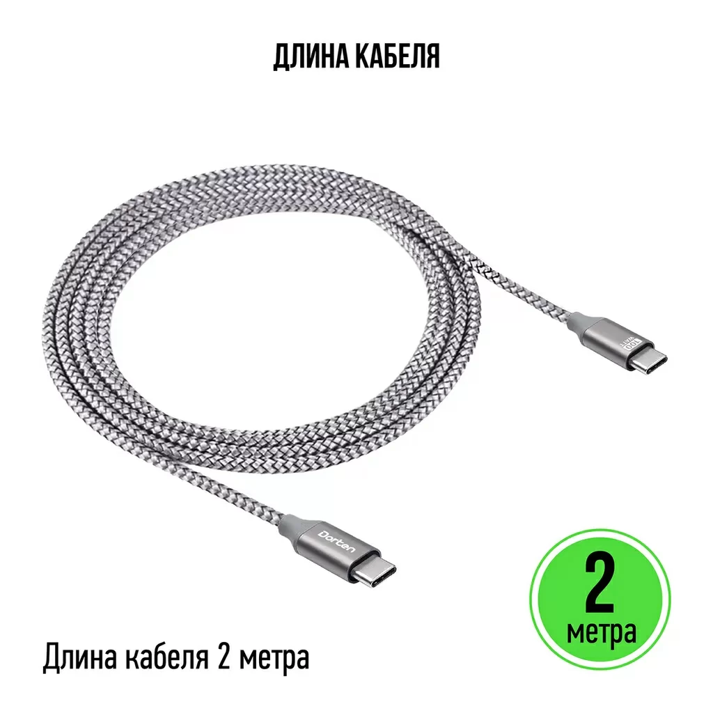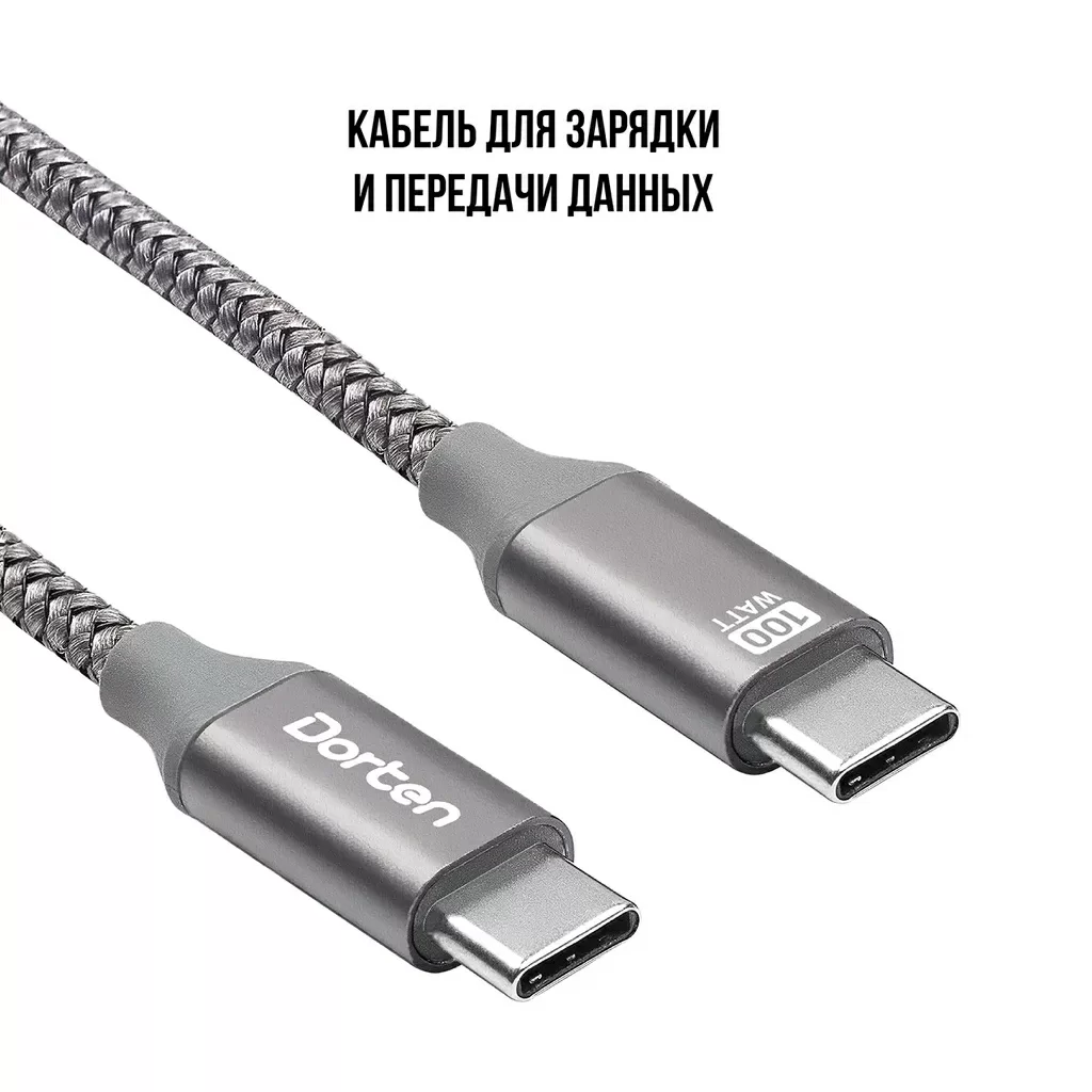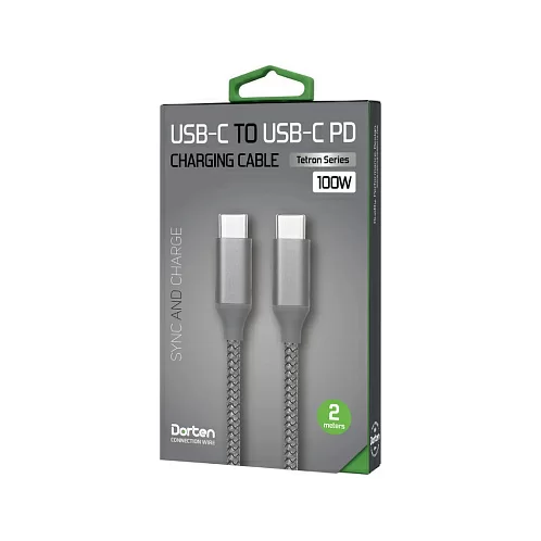 Кабель Dorten USB-C / USB-C PD, 100W, 2м, темно-серый