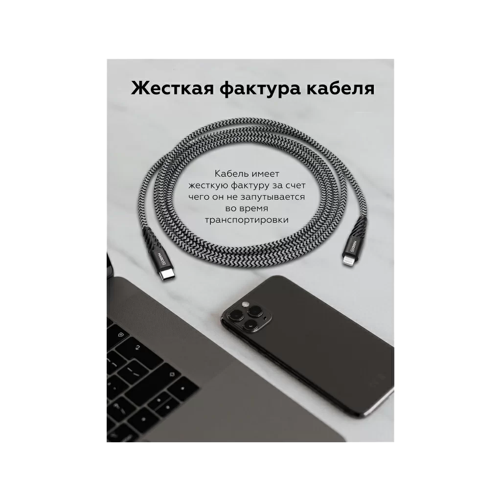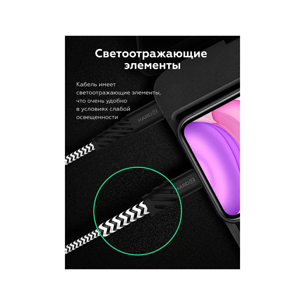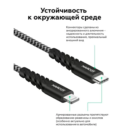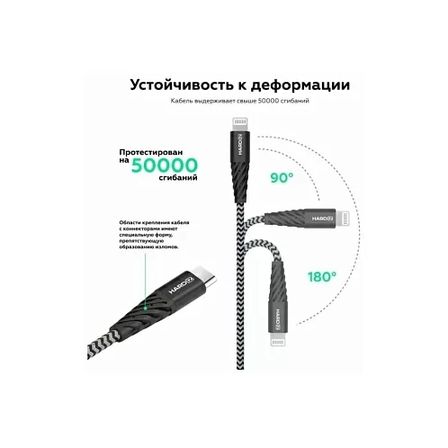 Кабель HARDIZ MFI USB-C / Lightning (C94) PD, 1.2м, черный