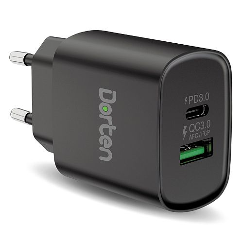 Сетевое зарядное устройство Dorten 2-Port USB 20W Wall Quick Charger PD3.0+QC3.0, черный