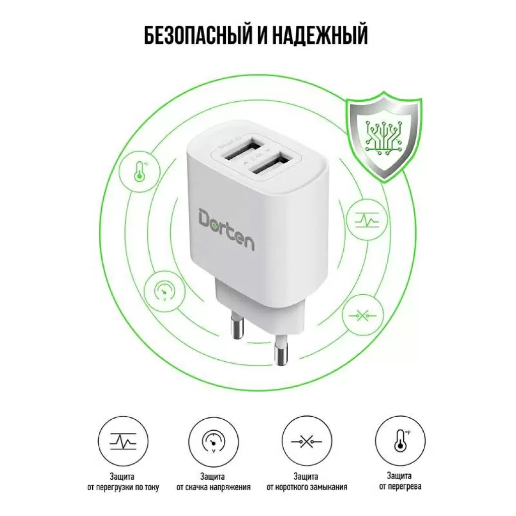 Сетевое зарядное устройство Dorten 2-Port USB Smart ID 12W Wall QC 2.4A, белый