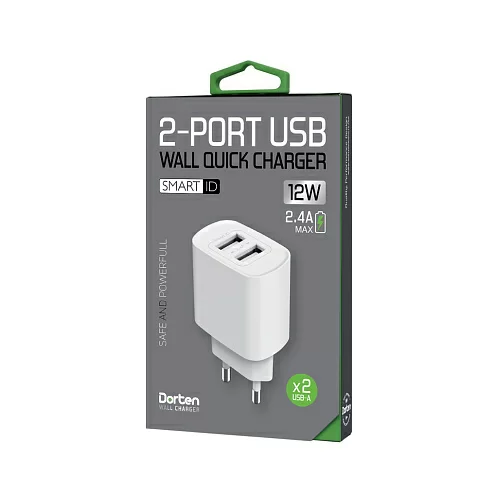 Dorten 2-Port USB Smart ID 12W Wall QC 2.4A