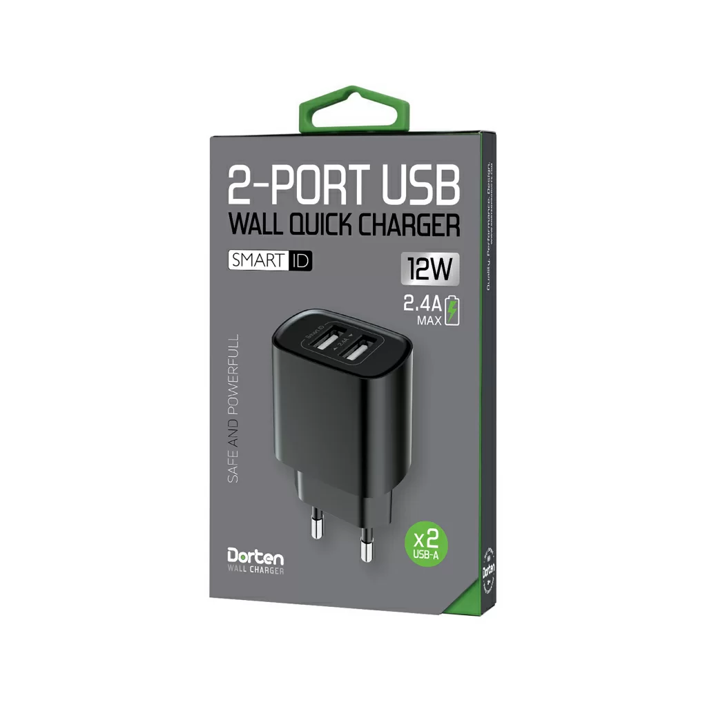Dorten 2-Port USB Smart ID 12W Wall QC 2.4A