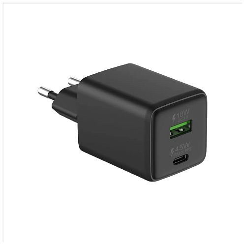 Универсальное зарядное устройство с возможностью подключения до 2-х устройств. С помощью передовой технологии GaN зарядное устройство поддерживает выходную мощность до 45 Вт и при этом имеет компактные размеры. Чипсет Smart ID обеспечивает эффективную зарядку одного требовательного устройства или любых двух устройств определяя использование каждого порта и соответствующим образом направляя оптимальную мощность. Безопасность адаптера питания и подключенных устройств обеспечивается встроенной защитой от перегрузки по току и напряжению.