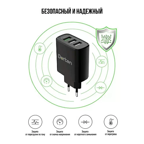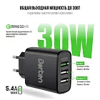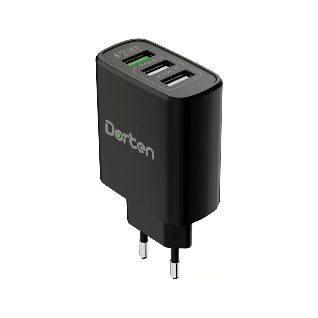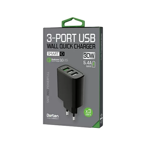 Сетевое зарядное устройство Dorten 3-Port USB Smart ID 30W Wall Quick Charger: QC3.0+2.4A, черный