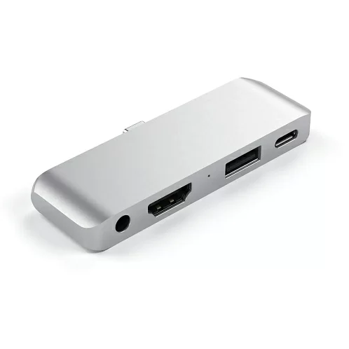 Адаптер Satechi Aluminum Type-C Mobile Pro Hub – один из первых адаптеров такого типа, созданных специально для новых iPad Pro (2018). Включает порт HDMI 4K (30Гц), порт USB-C PD 3.0 для зарядки (до 18 Вт), порт USB 3.0 (до 5 Гбит/с) и гнездо для наушников 3.5 мм.