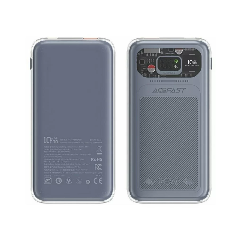 Внешний аккумулятор ACEFAST M1-10000 Sparkling series с функцией быстрой зарядки 30W, серый