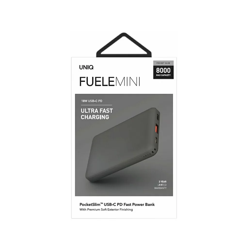 Внешний аккумулятор Uniq Fuele Mini, USB-C PD18W + USB QC3.0, 8000 мАч, серый