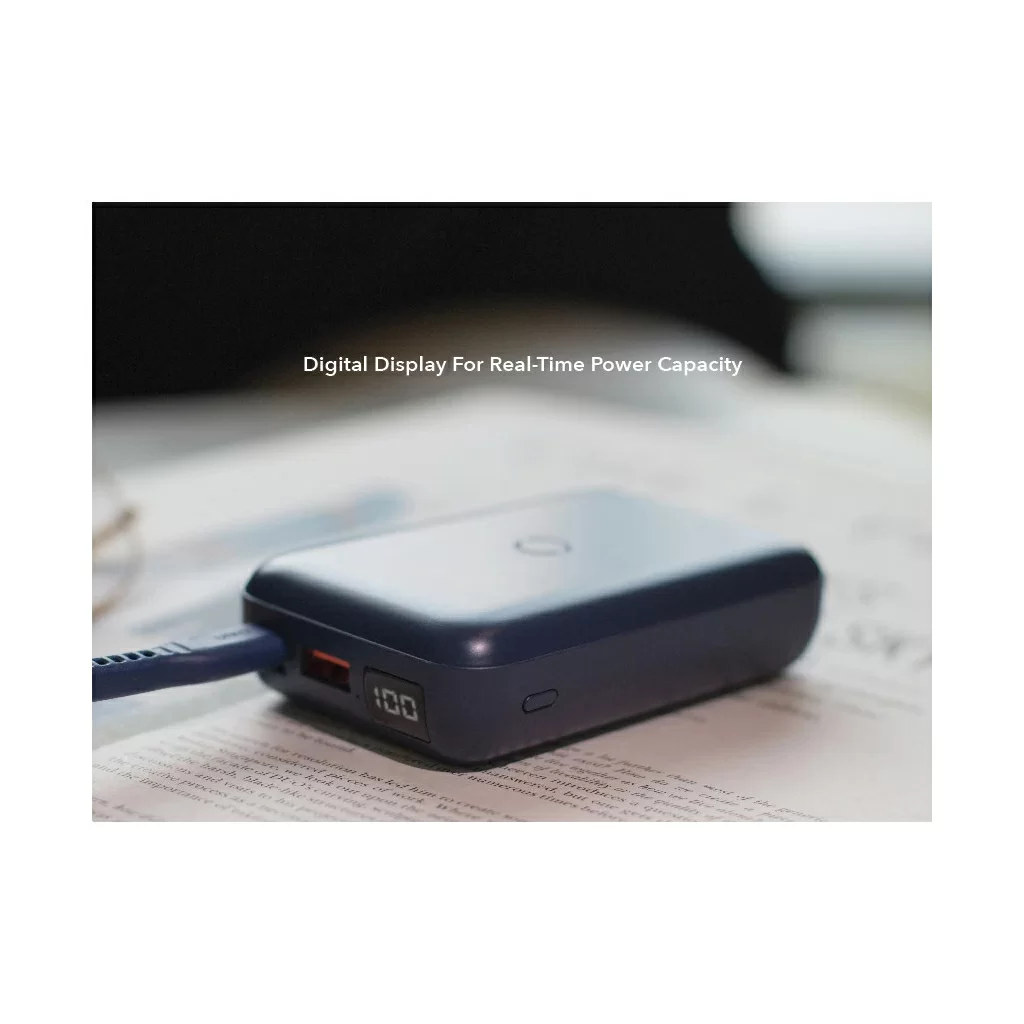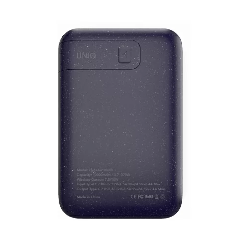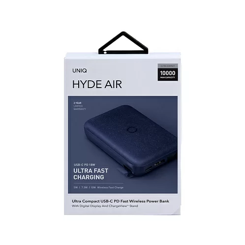 Внешний аккумулятор Uniq HYDEAIR 10000W, беспровод 7.5/10W, провод USB-C 18W, дисплей, синий