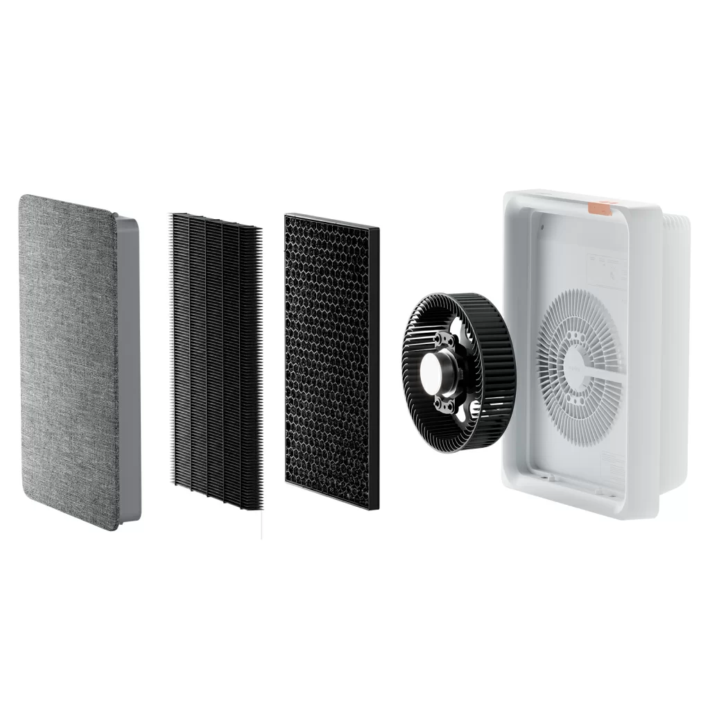 HEPA-фильтр с активированным углем эффективно поглощает неприятные запахи и летучие частицы размером до 0,3 мкм: пыль, пыльцу, шерсть домашних животных.