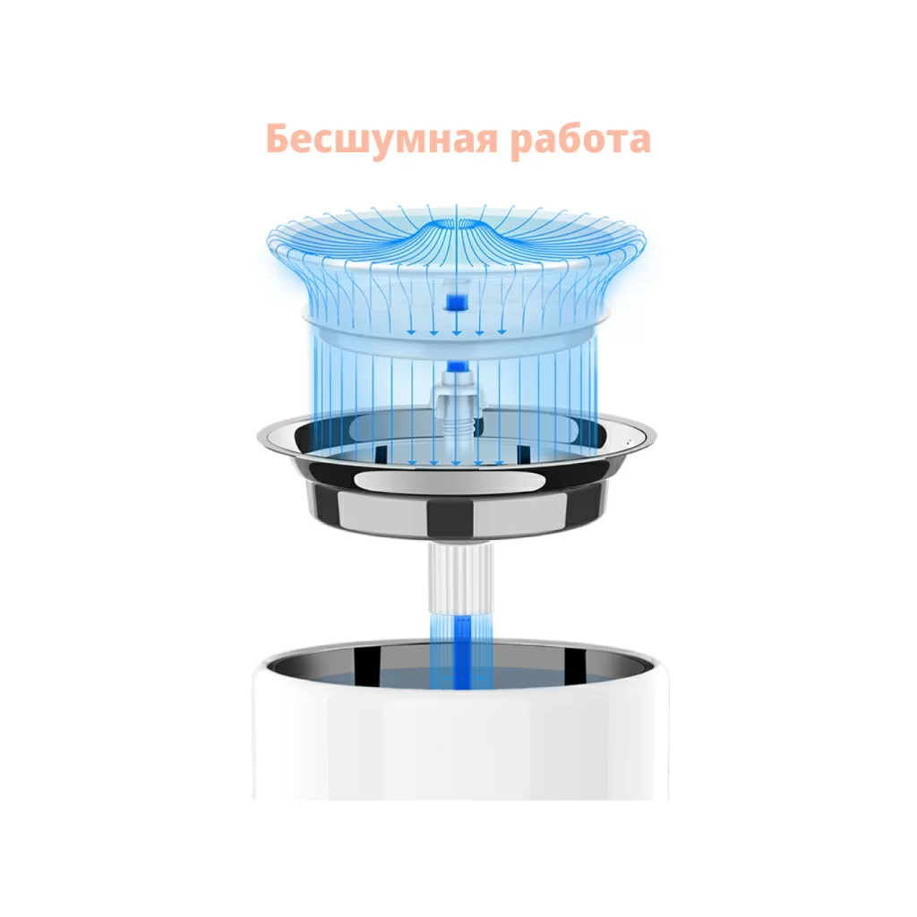 Низковольтный бесшумный водяной насос 5V взаимодействует со структурой потока воды в форме римской колонны, чтобы сохранить высоту струи 10-15 мм, имитируя естественный источник питья. Уровень шума ниже 35 дБ: вы можете ставить фонтан даже в спальне.