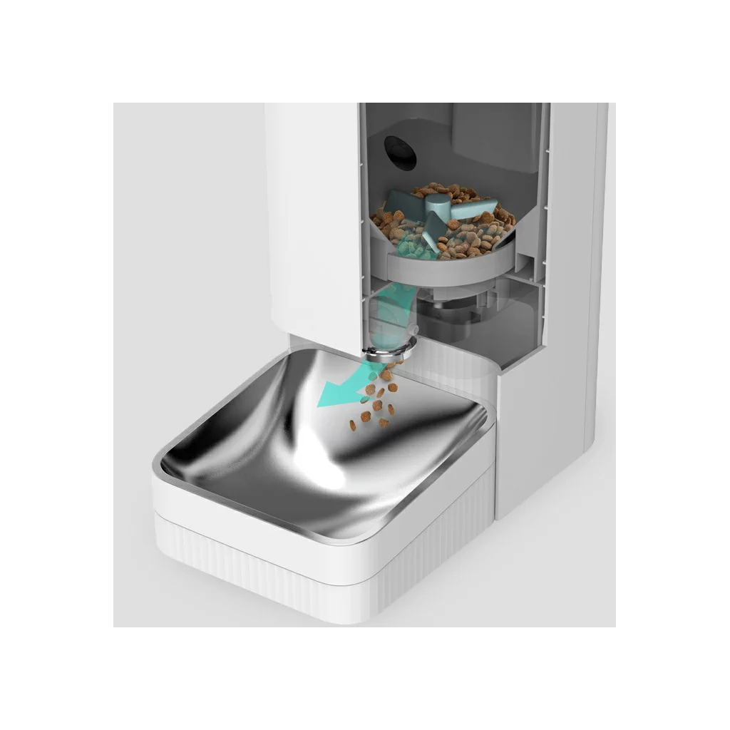Отделение для корма, мешалка, лопасти для подачи и кормовая чашка из нержавеющей стали 304 соответствуют требованиям к материалам, контактирующим с продуктами питания. Кормовая чашка снимается для очистки. Так вы сможете эффективно следить за тем, чтобы жир не накапливался и питомец оставался чистым.