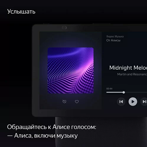 Просите Алису искать и включать музыку, фильмы или сериалы, а потом управляйте контентом на экране касаниями: перематывайте, ставьте на паузу и выбирайте нужное. Смотрите телеканалы. Задавайте Алисе вопросы — и не только слушайте её ответы, но и смотрите их на экране. Или пользуйтесь браузером.
