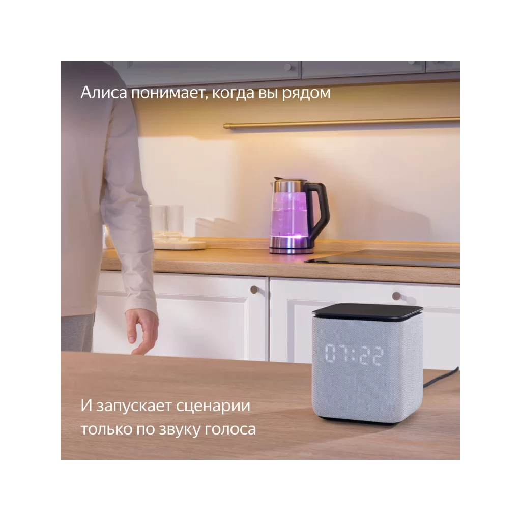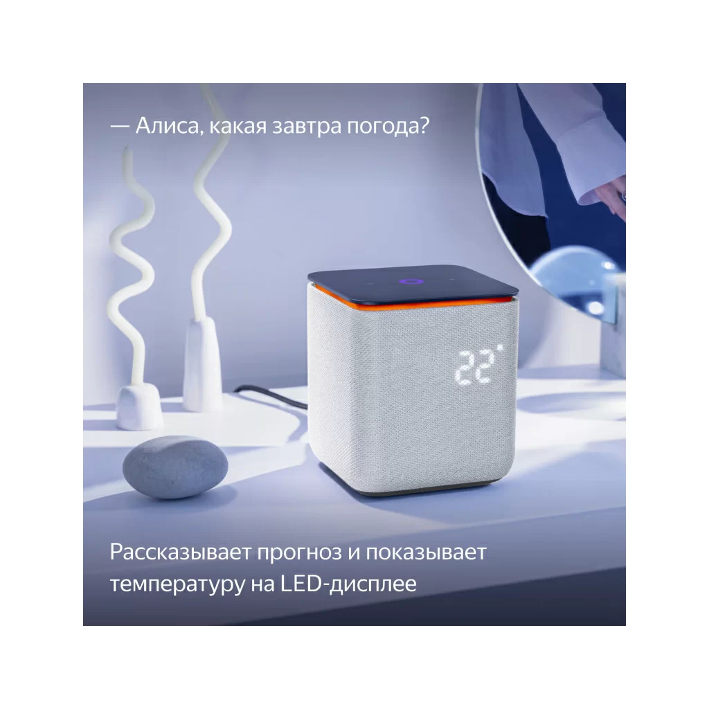 Активная контурная LED-подсветка и анимированные реакции на дисплее добавляют эмоций, когда слушаете музыку и общаетесь с Алисой. LED-дисплей показывает время и температуру