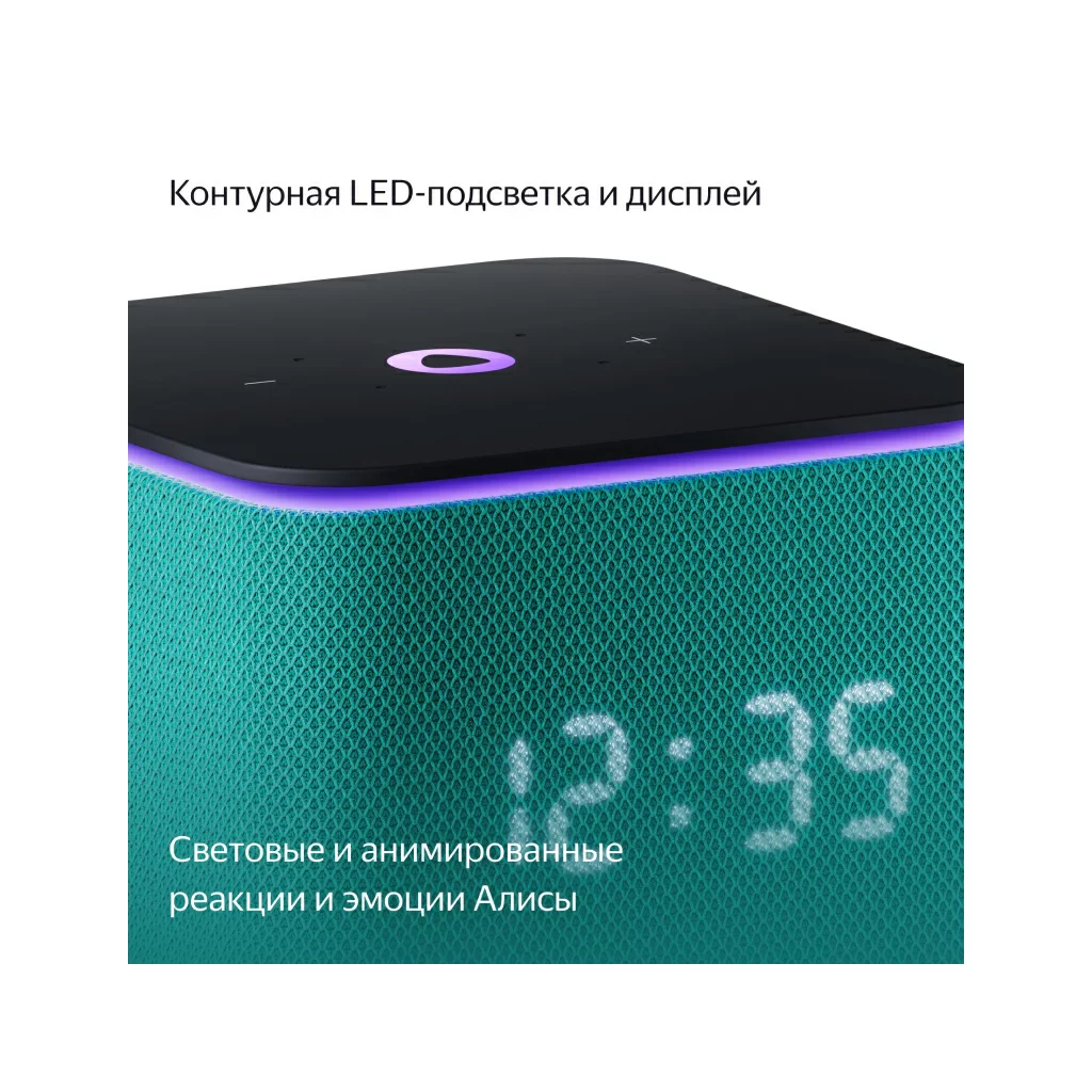 Активная контурная LED-подсветка и анимированные реакции на дисплее добавляют эмоций, когда слушаете музыку и общаетесь с Алисой. LED-дисплей показывает время и температуру