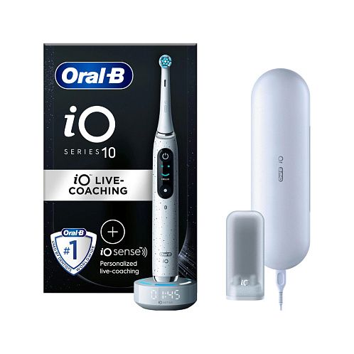 Единственная щетка, в которой форма, функциональность и живая обратная связь пересекаются для идеальной чистоты. Перезаряжаемая электрическая зубная щетка Oral-B iO Series 10 с iO Sense Cosmic Black